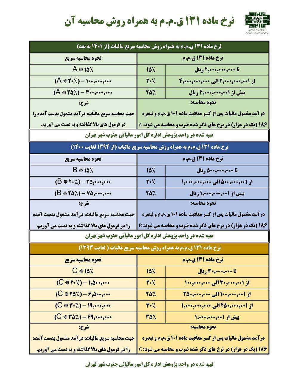 جدیدترین نرخ های ماده 131 قانون مالیاتهای مستقیم